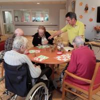 Publiée le 12/10/2025Plusieurs fois par mois, le dimanche, les Résidents ont l'occasion de se retrouver autour d'un traditionnel loto. Nul besoin d'y avoir déjà joué, il suffit d'un zeste de concentration et surtout de la chance pour remplir une ligne, deux lignes, voire le carton plein. Aujourd'hui, madame J a réussi le [...] Lire la suite