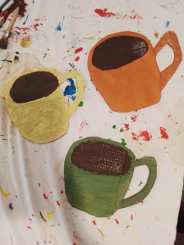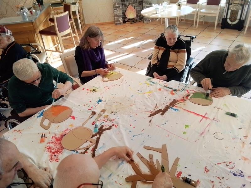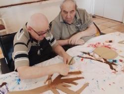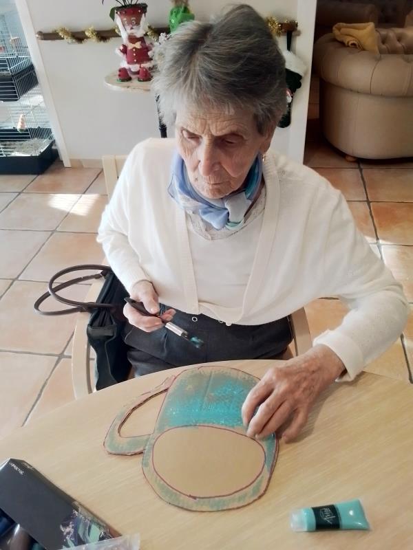 Les membres du "Club" participent régulièrement à des activités créatives. Lors du dernier atelier, les participants ont débuté la création de tasses en carton qui participeront à la décoration du "Club". Après avoir découpé les motifs, les Résidents ont méticuleusement appliqué une couche de peinture. D'autres objets viendront bientôt s'ajouter à ces tasses, enrichissant ainsi ce service à café.