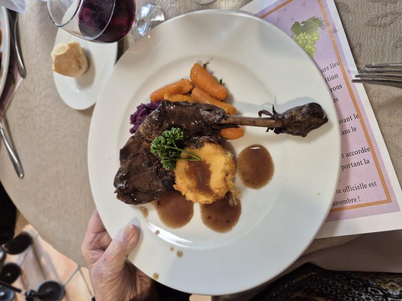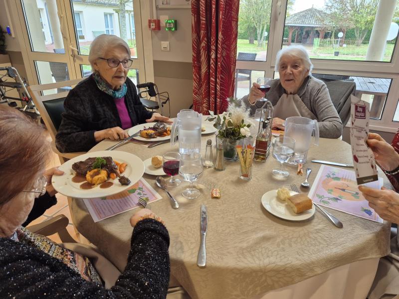 Au menu : assiette de charcuterie en entrée, cuisse de pintade sauce vigneronne en plat de résistance et, pour finir en douceur, une poire au vin d’épices en dessert ! L'ambiance a rappelé les traditions des fêtes du vin. Les résidents ont apprécié les saveurs authentiques et la présentation soignée de chaque plat.