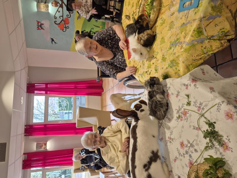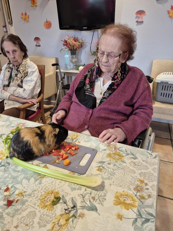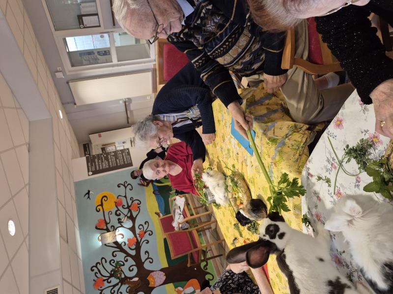 Tous les 15 jours, Valérie revient à la résidence accompagnée de ses fidèles compagnons. Les résidents, habitués à ces visites régulières, attendent avec impatience chaque rencontre. Ces moments privilégiés permettent de renforcer les liens, d’éveiller la curiosité et de partager des instants de complicité et de bien-être avec les animaux. La présence des animaux apporte une touche de douceur au quotidien et crée une atmosphère apaisante dans la résidence.