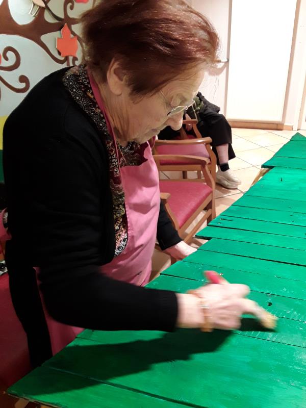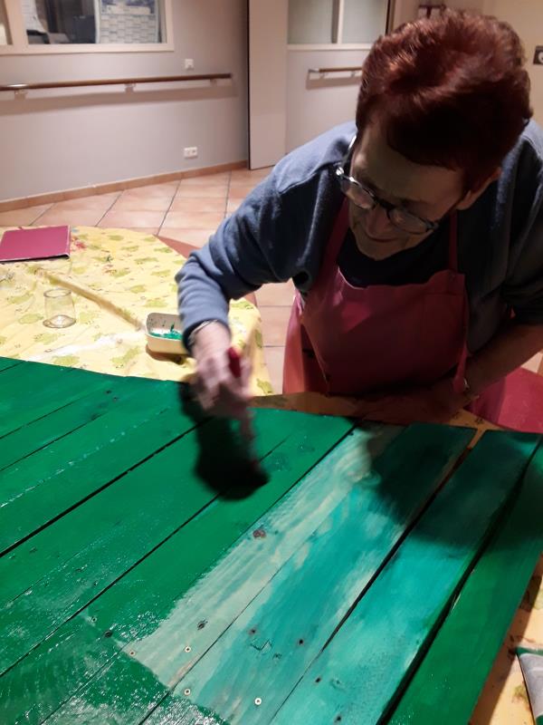 Cet après-midi, les Résidents ont rajeuni un sapin de bois en ravivant sa couleur verte. Une fois sec, il retrouvera ses habits de Noël avec des guirlandes colorées et des boules multicolores. Dans quelques jours, notre résidence va aussi se revêtir de ses ornements de Noël.