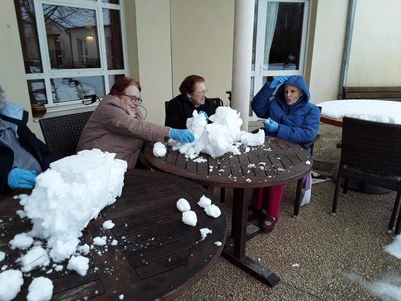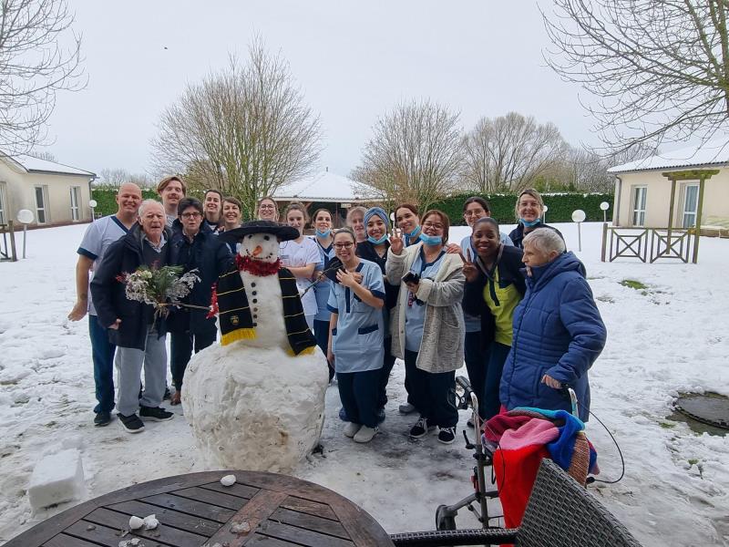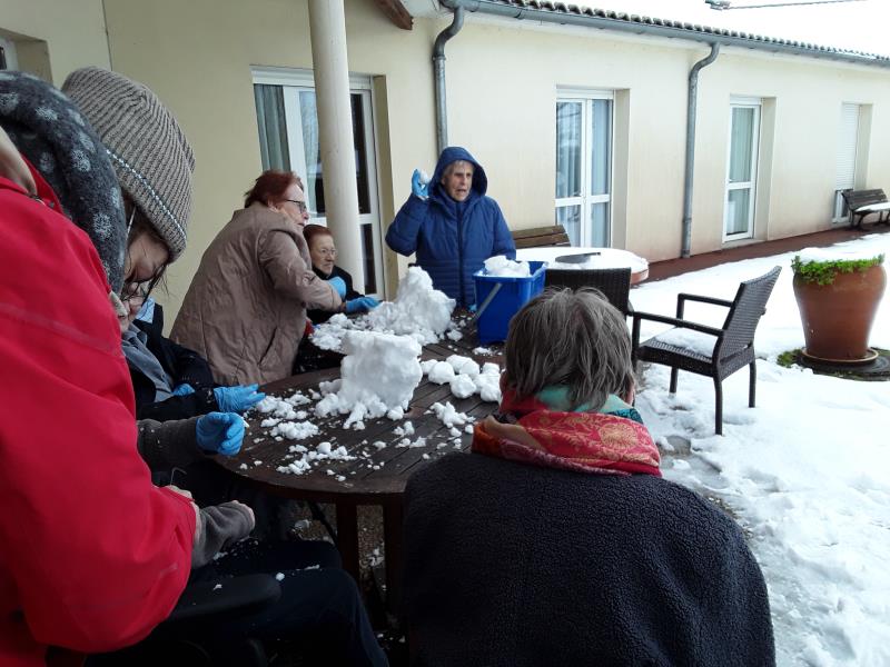 Hier matin, notre résidence s'est réveillée sous un épais manteau neigeux. Cet après-midi, avec le redoux des températures, les Résidents et les salariés se sont offert un moment de détente avec une bataille de neige acharnée et pour clôturer cet instant unique, un bonhomme de neige a vu le jour. Les unités Pré Vert et Bastide ont également présenté leur bonhomme de neige aux traits plutôt féminins. Ces chaleureux moments de partage sont nombreux. Résidents et salariés se retrouvent très régulièrement pour se divertir notamment lors de spectacles, de sorties et de lotos.